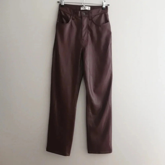 Abercrombie 90s Straight Ultra High Rise Faux Leather Pants Oxblood Red 25 0