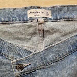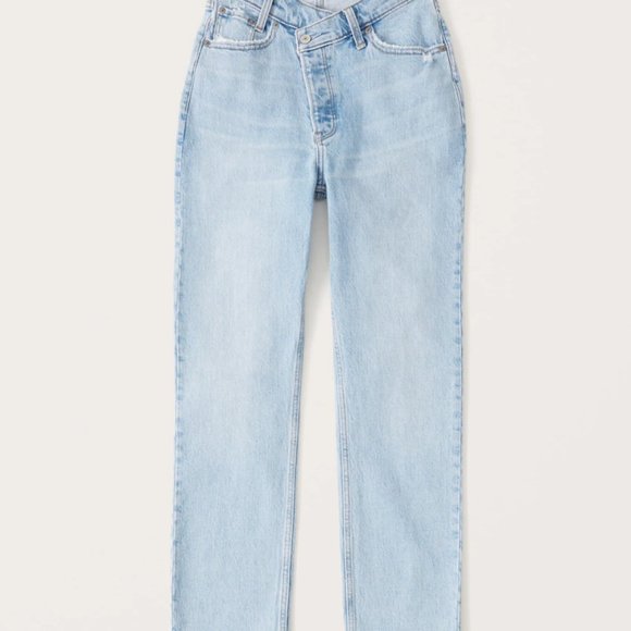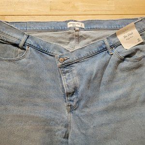 Light Denim Abercrombie Curve Love High Rise Dad Jeans with criss-cross waist band.