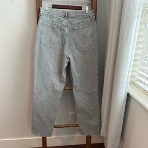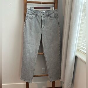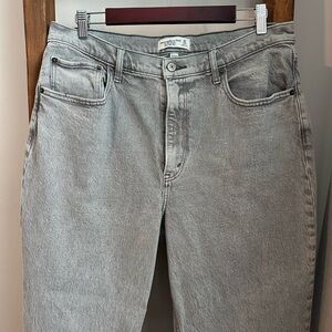 These high-rise jeans from Abercrombie & Fitch feature a classic straight-leg design in a uniform gray wash. Crafted from traditional denim, they offer a relaxed fit with a full-length silhouette, perfect for a casual, everyday look.