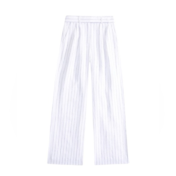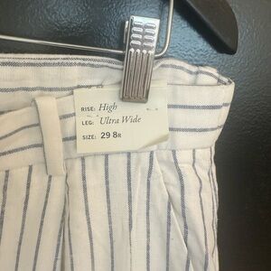 Abercrombie & Fitch NWT size 8R (both size 29 and 8 appear in tags SOLD OUT navy pinstriped linen blend ultra wide leg high waste slight pleat “Sloan” premium pants