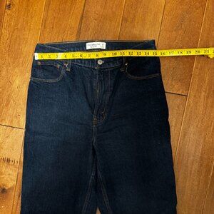 Stylish and flattering Abercrombie & Fitch 90’s Straight Ultra High Rise Jeans in a classic dark blue wash. These jeans feature that perfect vintage-inspired fit.