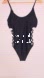 Sleek black one piece with stylish side cutouts. Gold accents add the luxe finish. Perfect for swimming in style.