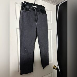 These jeans feature a sleek black color and a timeless straight leg cut, offering a versatile and classic look. Crafted from high-quality denim, they provide a comfortable fit suitable for various occasions. The understated design ensures they remain a staple in any wardrobe.