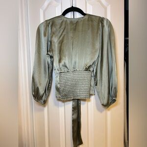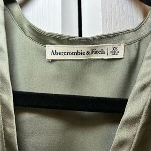 Abercrombie & Fitch - Bohemian Silky Satin with Tie Olive Green Tie-Front Blouse