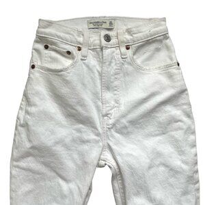 Abercrombie & Fitch Curve Love Ultra High Rise Ankle Straight Denim Jeans Size 23 or 000 in Cream White Destroy