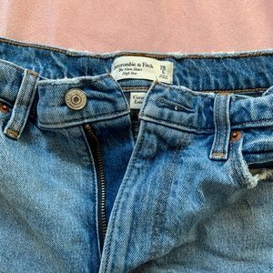 Medium light, ripped wash pair of curve love high rise mom shorts in size 28 from Abercrombie and Fitch. Lightly worn.
