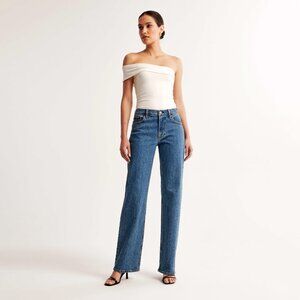 These size 25 Abercrombie & Fitch Low Rise Baggy Jean in Dark Marble were purchased in June 2024 and worn once.