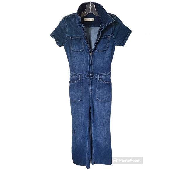 Abercrombie & Fitch Denim Full Zip Short Sleeve Jumpsuit Size 0