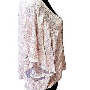 This flowy Bohemian crop top from Abercrombie & Fitch is pink, gray and white.