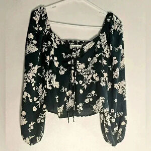 Abercrombie & Fitch Emerald Green Peasant Blouse long Sleeve sz Small