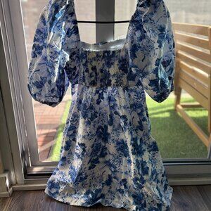 Abercrombie & Fitch Emerson Linen-Blend Puff Sleeve Mini Dress