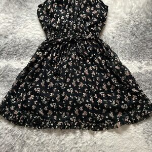 Vintage looking dress, has a waist tie that adjusts to your preferred fit. The waist itself is elastic.