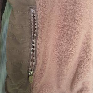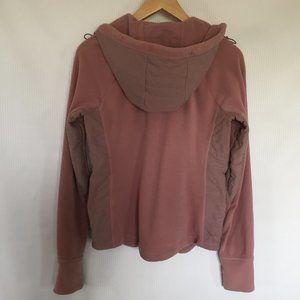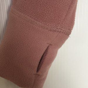 Dusty pink color fleece jacket. Full zip front, hood, zip side pockets, thumb holes. Soft and very warm. Gently used/ very good condition, no flaws.