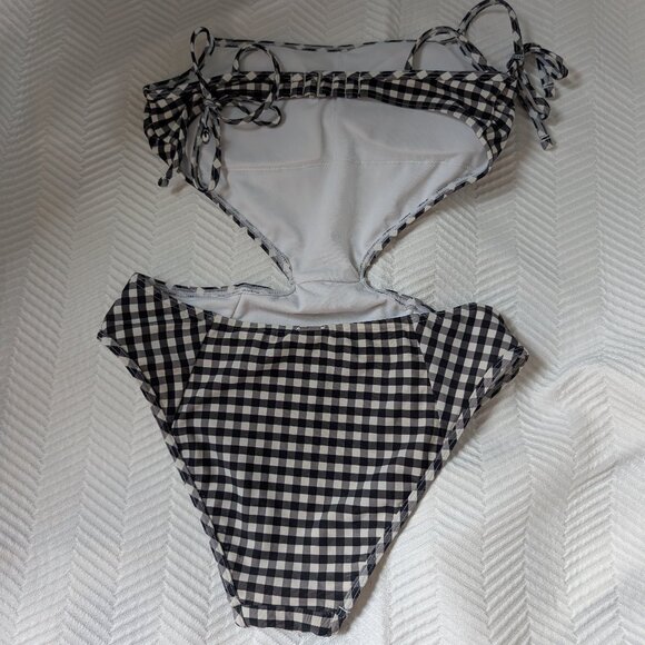 Abercrombie & Fitch Gingham Cutout One-Piece Swimsuit Size XS Black & White