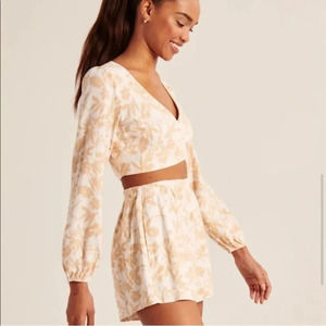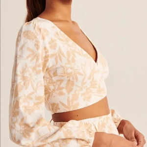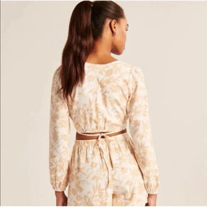 Abercrombie & Fitch Linen Wrap Top | Tan Floral | Size M