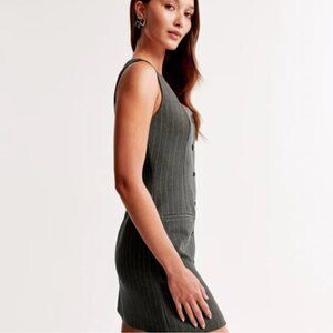 This is the Abercrombie & Fitch Mara Square Neck Dress in a rare XS Tall fit — the ultimate structured mini with a touch of preppy power. Designed in a sleek charcoal gray pinstripe suiting fabric, it features a flattering square neckline, princess seams, faux horn front buttons, and functional front pockets. A perfect mix of structured and soft, this dress gives off major model-off-duty, cool girl corporate, and clean girl energy. Great layered with a tee or worn solo.