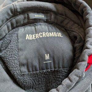 Abercrombie hoodie, muscle fit sweatshirt, vintage A&F hoodie, 1892 embroidered hoodie, navy red hoodie, size M hoodie, Y2K Abercrombie, preppy athletic style, Mississauga closet, old school Abercrombie, distressed hoodie, A&F hoodie