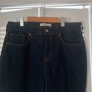 Bootcut jeans in a dark rinse wash with a clean hem. This fit is mid rise, is fitted at the waist, hips, and thighs and eases below the knee into a bootcut leg shape. This jean is made from a stretch fabric which features high stretch for superior comfort and fit. This fit runs a little longer in length intended to be worn with heels or boots.