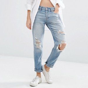 Upgrade your denim game with these never-worn Abercrombie & Fitch mid-rise boyfriend jeans. Get the relaxed fit and comfort you crave, elevated by a chic, light ripped wash.