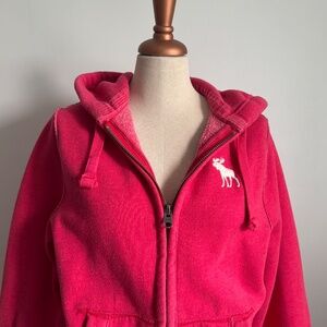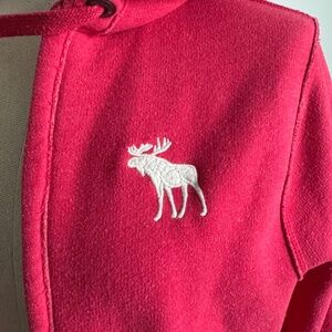Abercrombie & Fitch Muscle Pink -Red Zipped Hoodie with Embroidered White Deer - 2 pockets - Excellent -pre-owned condition