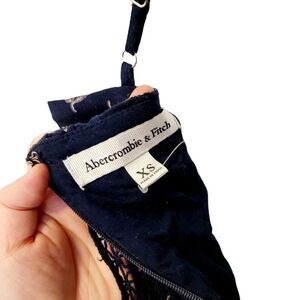 Stylish navy bodysuit with floral pattern. Features delicate straps and lace trim. Perfect for casual outings.