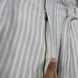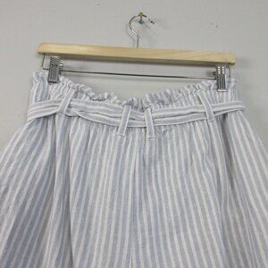 Abercrombie & Fitch Paperbag Shorts Women L White Blue Striped Linen Blend