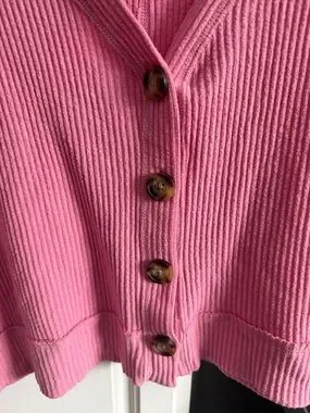 Abercrombie & Fitch Pink Ribbed Button-Front Cardigan