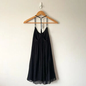 Abercrombie & Fitch Pleated Chiffon T Strap Back Mini Dress Black Size XS