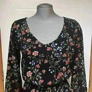 Abercrombie & Fitch Romper Floral Long Sleeve Cinch Waist Black