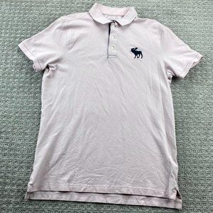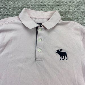 Abercrombie & Fitch Shirt Men Large L Pink Big Embroidered Logo Golf Casual