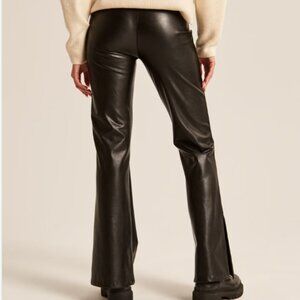 Abercrombie & Fitch Split-Hem Vegan Leather Slim Flare Pant Black