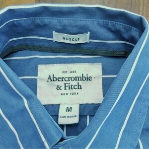 Abercrombie & Fitch Stripped Minimalist Pastel Blue Casual Relaxed Fit Long Sleeves Button Down Shirt Blouse.
