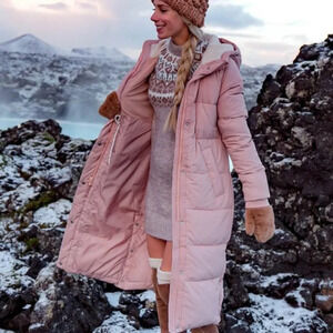 Abercrombie & Fitch Ultra Long Puffer Coat Jacket Light Pink Size Small