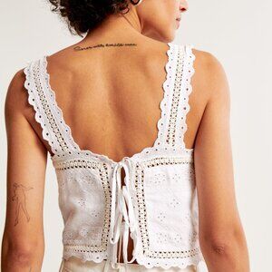 Abercrombie & Fitch White Linen-Blend Tie-Back Squareneck Crop Top Size Medium
