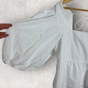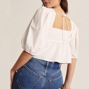 Abercrombie and Fitch White Puff Sleeve Square Neck Poplin Top in Women's Size Large. Made in India. Ties at the back. Lined. 60% cotton and 40% poly. Lined with cotton. Machine washable. Great pre-owned condition. Please review all photos.