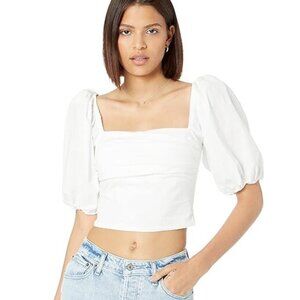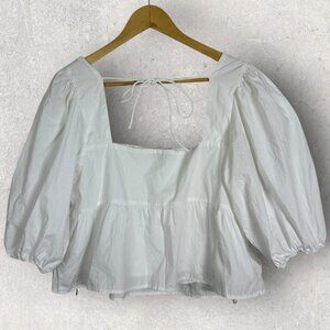 Abercrombie & Fitch White Puff Sleeve Square Neck Top Womens Size Large Blouse L