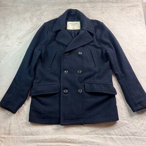 Abercrombie & Fitch Women XXL Premium Wool Coat Navy Blue Jacket Double Breasted