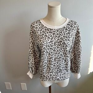 Abercrombie & Fitch Women's Cropped Puff Sleeve Cougar Print Cream Sweatshirt M