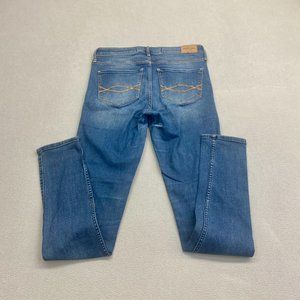 Upgrade your denim collection with these Abercrombie & Fitch skinny jeans in a classic blue wash. These size 10 regular jeans feature a button and zipper closure and measure W30xL33. The medium wash adds a versatile touch to your wardrobe, perfect for any occasion. Please note that there is one issue with these jeans, as shown in the pictures. Despite this, the jeans are in overall good condition and ready to be worn. Add these trendy jeans to your closet today! Jeans in good shape but there is a wear hole inner right thigh please see pics.