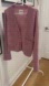Chic and cozy cardigan with button front. Features a soft mauve color and two front pockets.