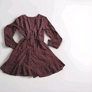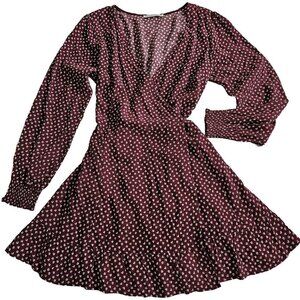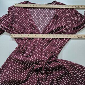 Abercrombie & Fitch Wrap Dress Women PL Wine Beige Mini Lined Ties Dainty Floral