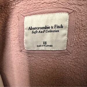 Cozy pink hoodie with front pockets and zipper. Features Abercrombie & Fitch logo.