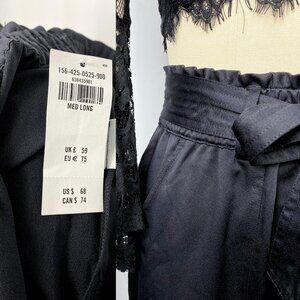 Abercrombie & Fitch black satin high rise taper paperbag trousers medium NWT
