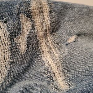 Abercrombie & Fitch distressed embroidered jeans. Faded blue. Size 10, 30W.