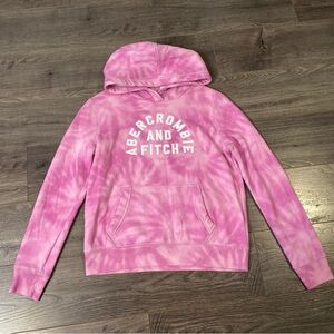 Stylish pink tie-dye hoodie with Abercrombie & Fitch logo. Comfortable and trendy.