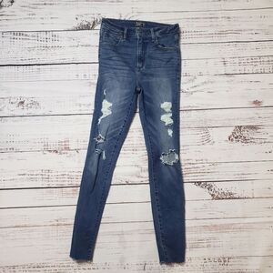 Brand Abercrombie & Fitch high rise skinny with Distressing as pictured.
