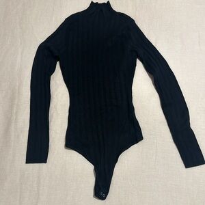 Abercrombie Long Sleeve Mockneck Wide Rib Bodysuit in Black