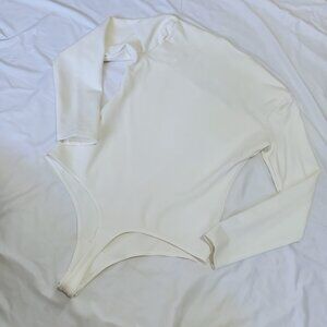 Abercrombie Long-Sleeve Ponte Squareneck Bodysuit - Medium - White/Cream