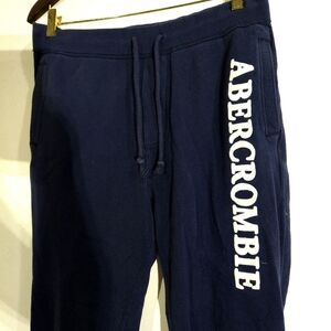 Stylish navy joggers with Abercrombie logo. Comfortable and trendy.
