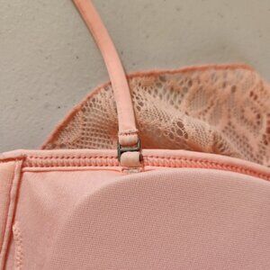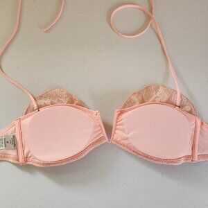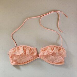 Abercrombie Peach Pink Crochet Ruffle Bandeau Halter Swimsuit Bikini Top